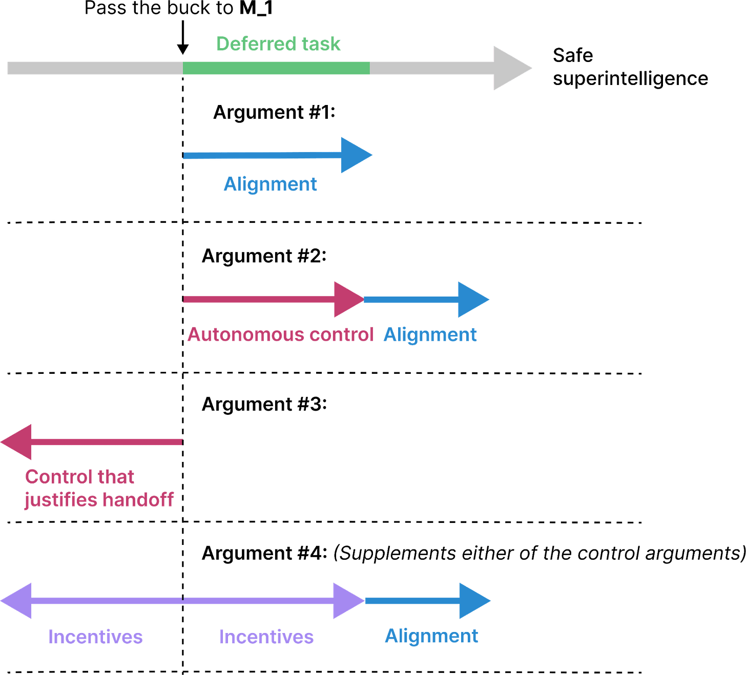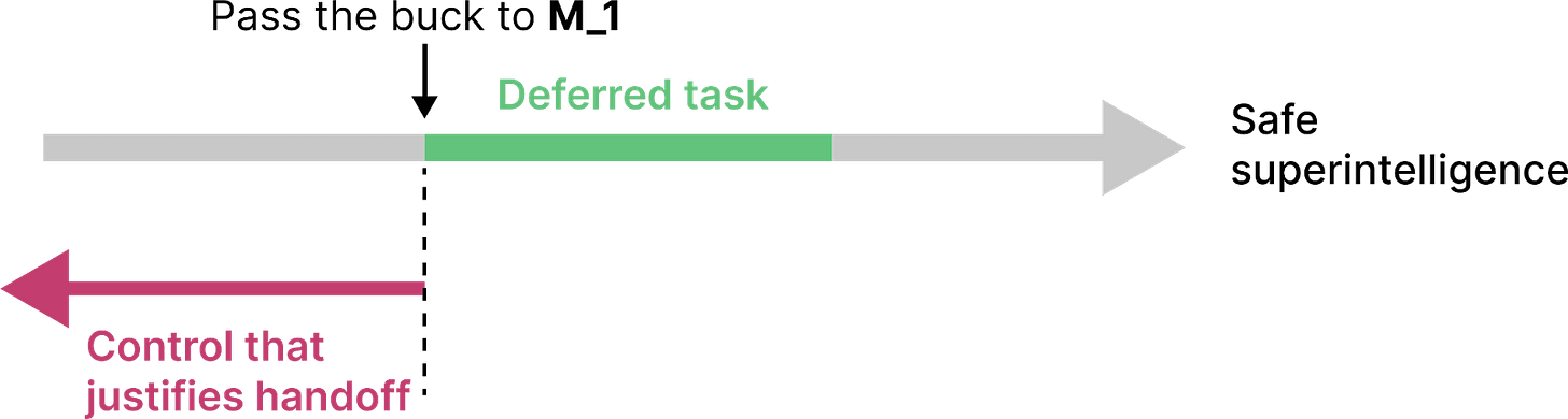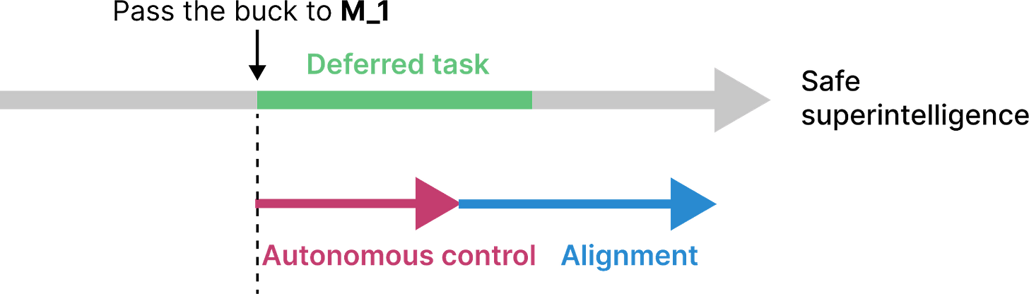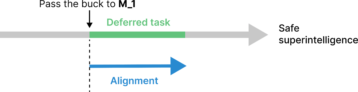 Then I discuss a few different strategies for passing the buck (section 3). Each strategy defers some of the remaining safety work (called a “deferred task”) to an AI system M_1: