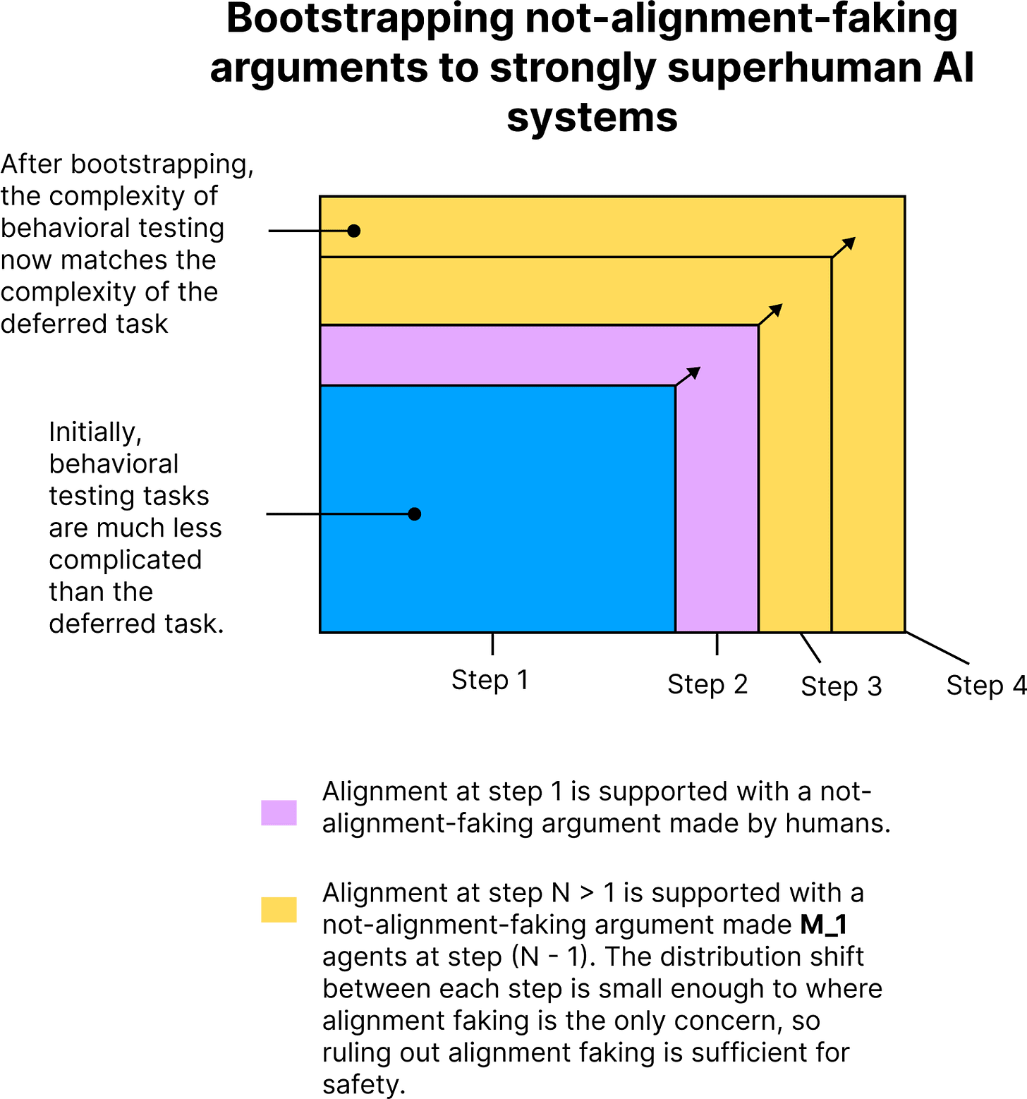 Figure 5. A full alignment-style argument that M_1 agents are more safe than human researchers (section 8).