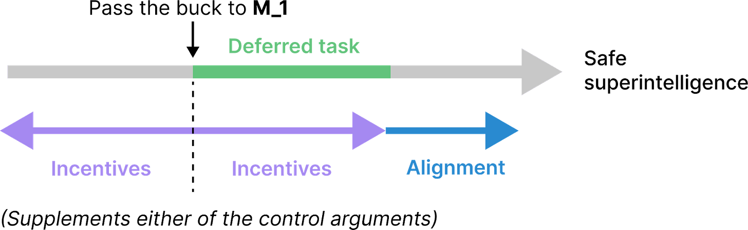 These incentive-style arguments provide less assurance than their alignment and control counterparts; however, they are potentially a low-cost way to meaningfully improve the safety of passing the buck to AI agents.